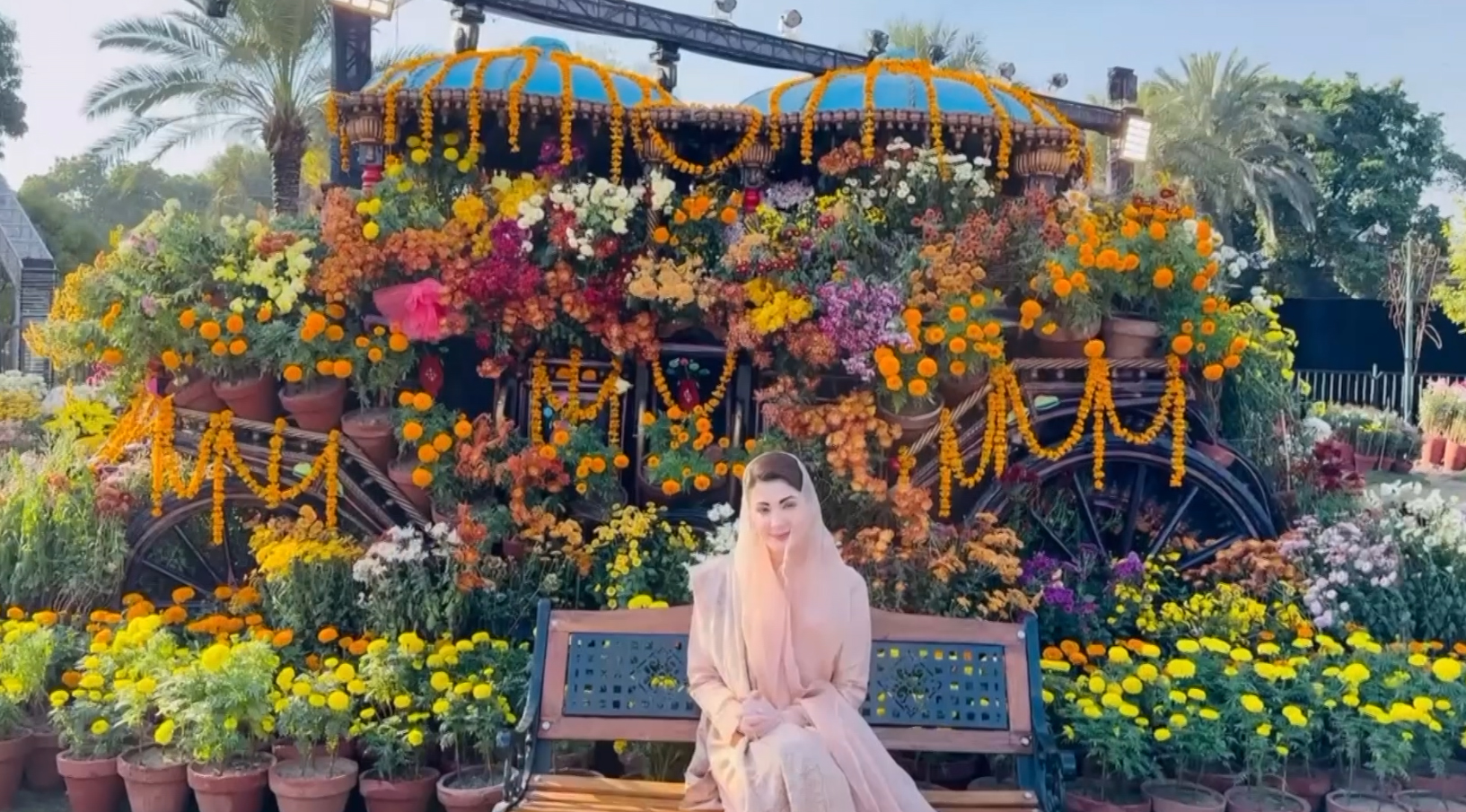 وزیر اعلی مریم نواز کی گل داؤد ی کی مختلف رنگا رنگ اقسام میں دلچسپی کا اظہار کرتے ہوئے گل داؤدی سے بننے مختلف ماڈلز کا معائنہ کیا، مریم نواز نے گل داؤدی سے بننے اونٹ کے ماڈل اور پھولوں سے لدی بگھی کے سامنے تصویر بھی بنوائی۔