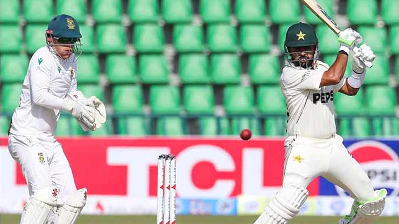 سابق کپتان بابراعظم صرف 23 رنز ہی بنا سکے جبکہ سعود شکیل نے کھاتہ کھولے بغیر پویلین کی راہ لی، جنوبی افریقہ کی جانب سے سینوران متھوسامی نے 2، کاگیسو ربادا، سائمن ہارمر اور پرینیلن سبریئن نے ایک ایک وکٹ حاصل کی۔