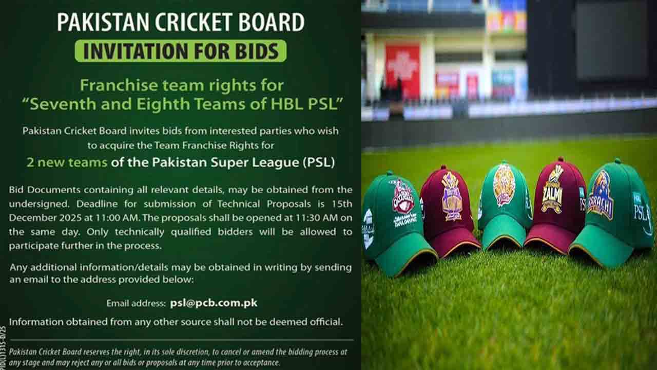 پی سی بی نے اس سلسلے میں ایک پریس ریلیز جاری کی ہے جس میں کہا گیا ہے کہ ٹیکنیکل پروپوزلز جمع کرانے کی آخری تاریخ 15 دسمبر 2025 ہے، صرف وہ بڈرز جو تکنیکی طور پر اہل ہوں گے، انہیں بڈنگ کے عمل کے اگلے مرحلے میں حصہ لینے کی اجازت دی جائے گی۔