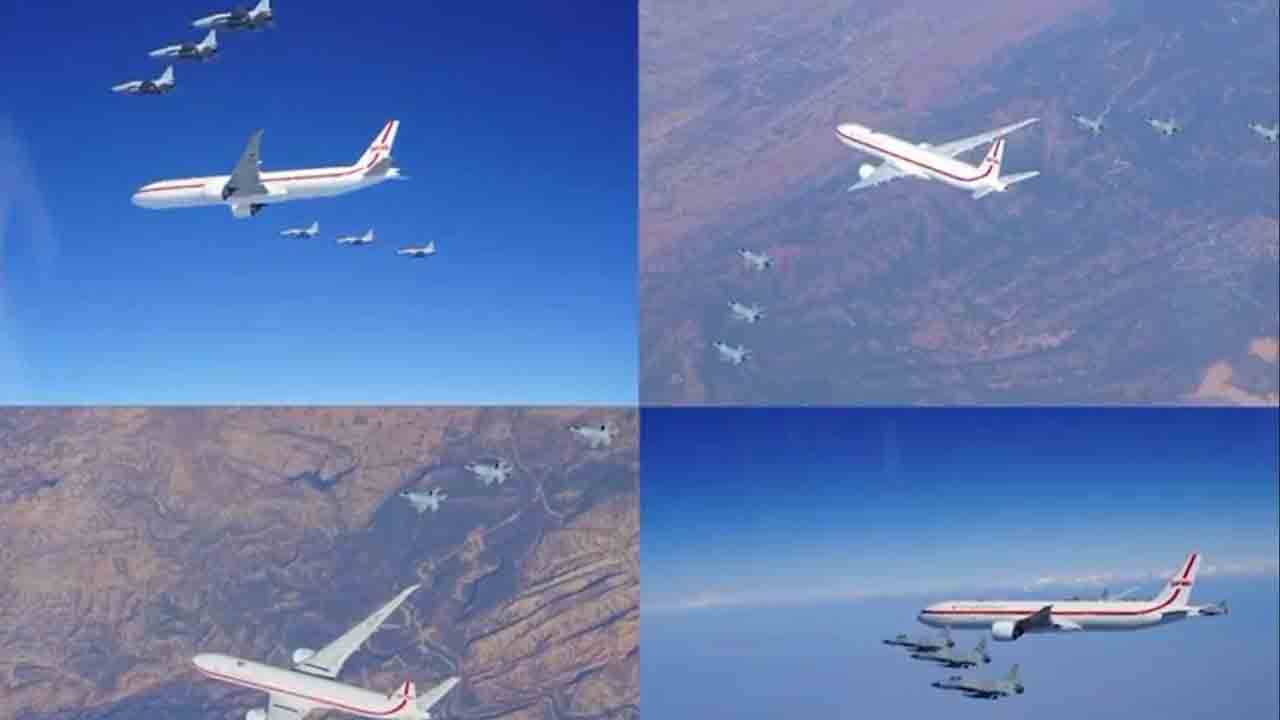 پاک فضائیہ کے 6 جے ایف 17 جنگی طیاروں نے انڈونیشیا کے صدر کا شاندار استقبال کیا، پاک فضائیہ کےجنگی طیاروں نےانڈونیشیا کے صدر پرابوووسبیانتو کو فضائی سلامی پیش کی، اس موقع پر پاک فضائیہ کے طیاروں نے انڈونیشیا کے صدر کا طیارہ پاکستان کی حدود میں داخل ہوتے ہی حصار میں لے کر منفرد انداز میں خوش آمدید کیا۔