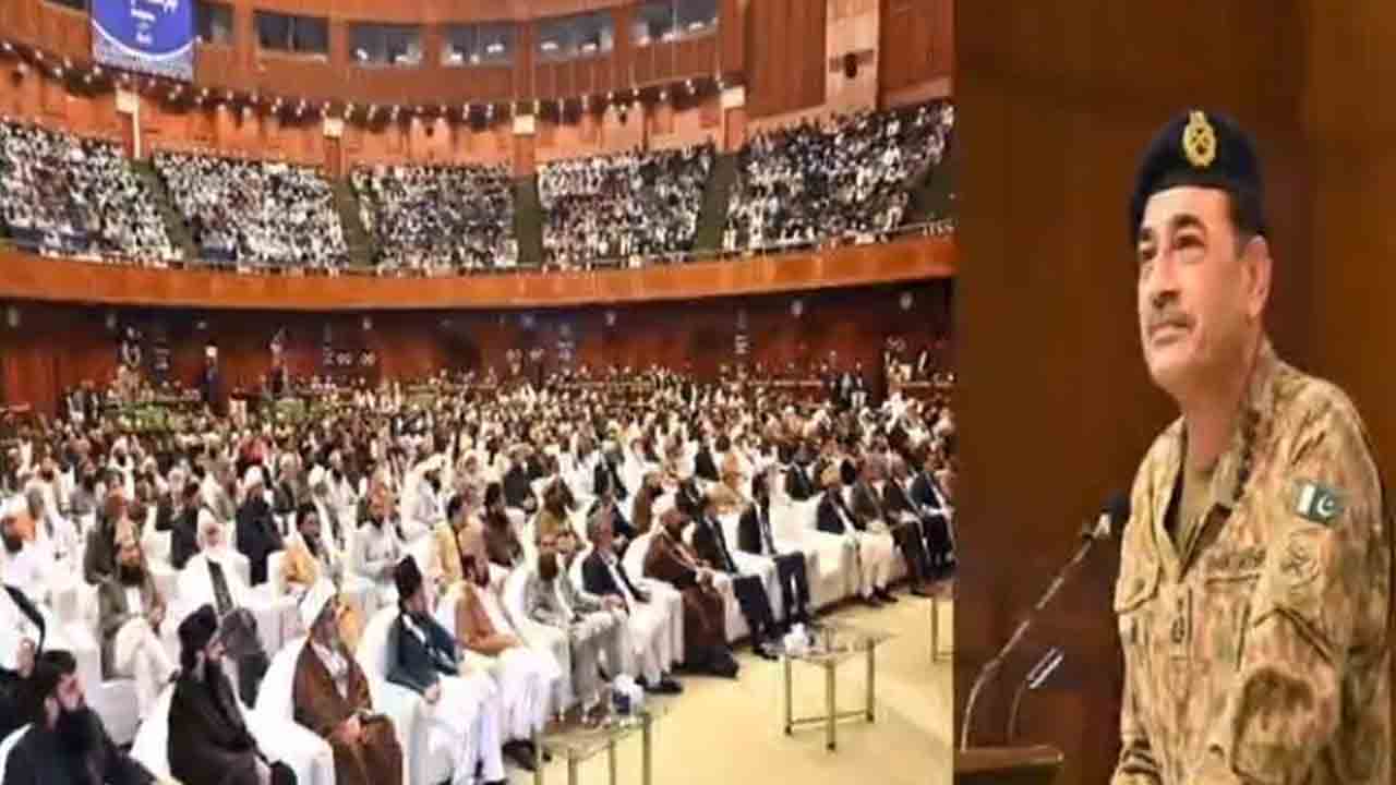 سید عاصم منیر نے مزید کہا کہ دہشت گردی پاکستان کا نہیں ہندوستان کا وطیرہ ہے، ہم دشمن کو چھپ کے نہیں للکار کر مارتے ہیں، معرکہ حق میں اللہ کی نصرت سے کامیابی ملی، علماء قوم کو متحد رکھیں اور قوم کی نظر میں وسعت پیدا کریں۔