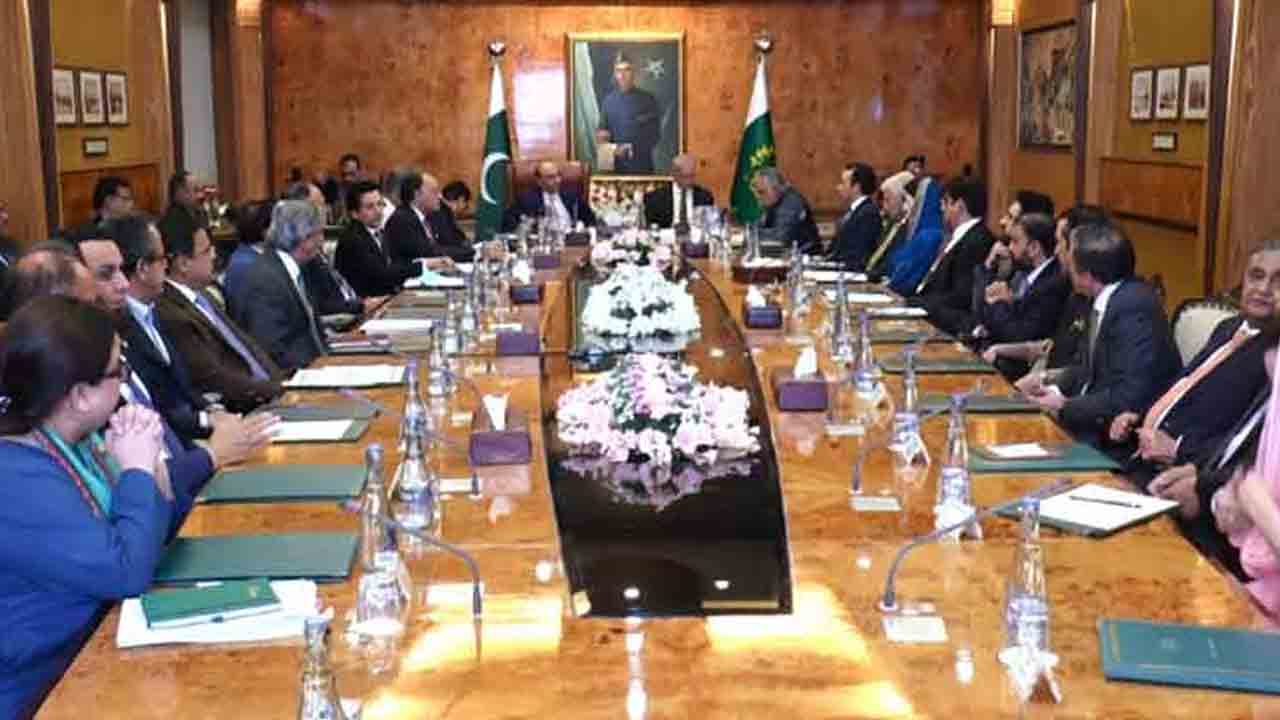 وفاقی دارالحکومت میں صدر مملکت کی زیر صدارت قومی قیادت کا اہم مشاوراتی اجلاس ہوا، جس میں وزیراعظم شہباز شریف ، نائب وزیراعظم اسحاق ڈار، وفاقی وزراء اورچیئرمین پیپلزپارٹی بلاول بھٹو کے علاوہ مشیر قومی سلامتی لیفٹیننٹ جنرل عاصم ملک اور چاروں صوبوں کے وزرائے اعلیٰ نے شرکت کی۔