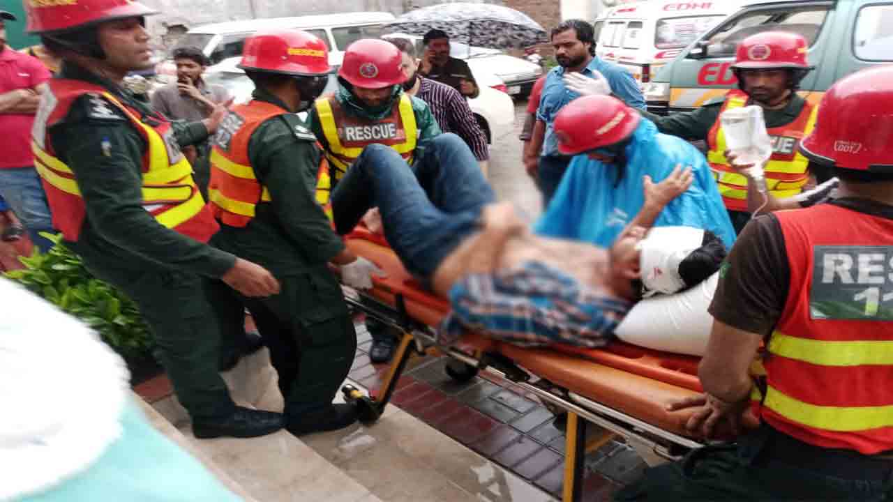 ادھر موسلادھار بارش کے باعث مزنگ ہسپتال کی دیوار گرنے سے 14 افراد ملبے تلے دب کر زخمی ہو گئے، زخمیوں کو ابتدائی طبی امداد کے بعد گنگا رام ہسپتال منتقل کردیا گیا، جہاں 2 زخمیوں کی حالت تشویشناک بتائی جارہی ہے۔
