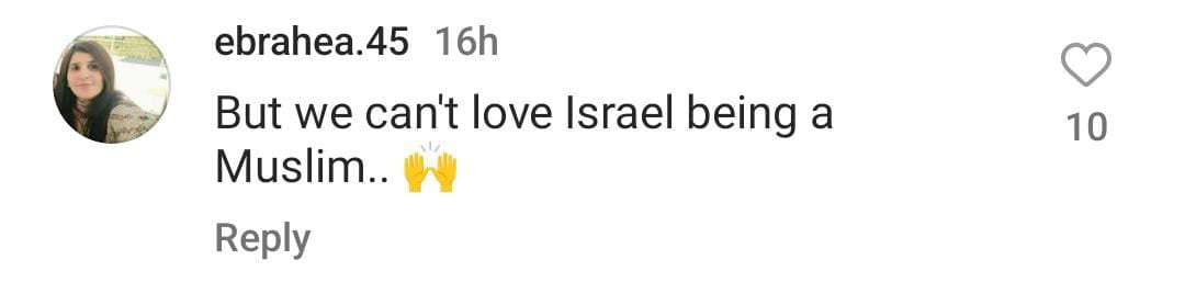 صارفین نے نعمان اعجاز کی اس پوسٹ کو اسرائیل سے نفرت کرنے سے جوڑ دیا اور تبصرے کرتے ہوئے کہا کہ اداکار چاہتے ہیں کہ ہم مسلمان اسرائیل سے محبت کریں۔ایک صارف نے کہا کہ “بطورِ مسلمان ہم اسرائیل سے محبت نہیں کر سکتے”۔