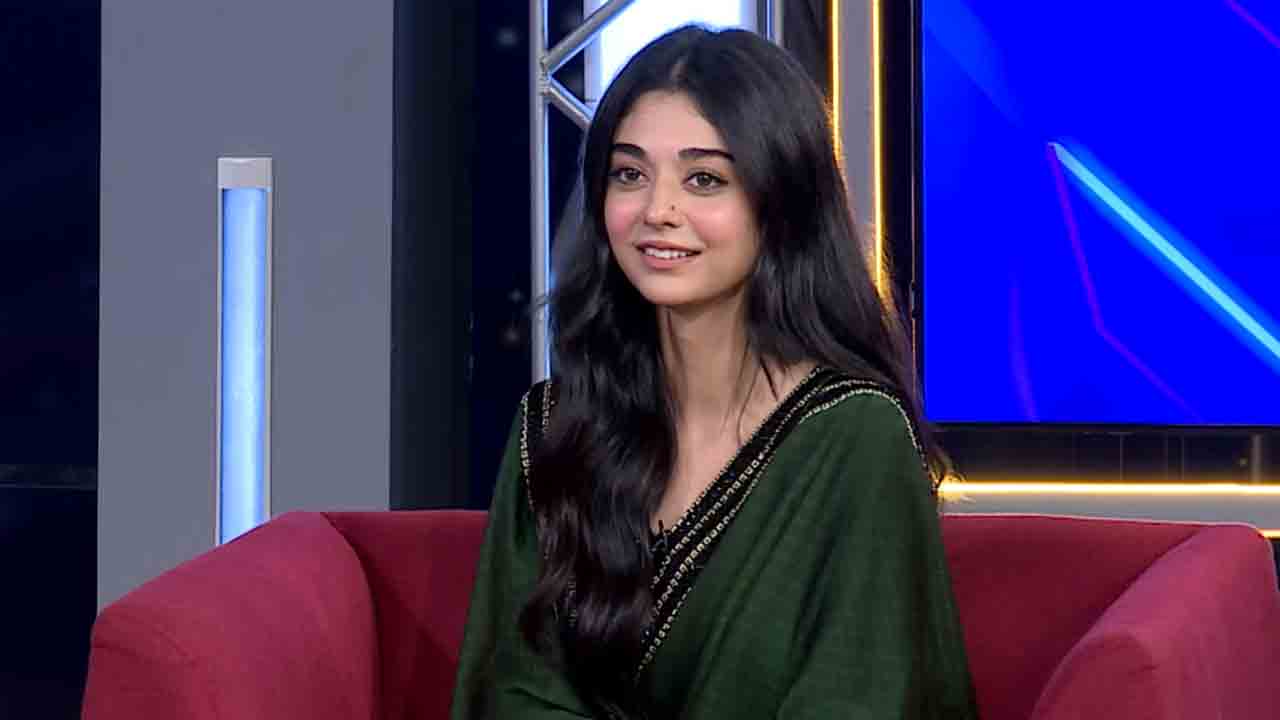 صبور نے حسین ساڑھی کے ساتھ سلور ہار اور بُندے پہن رکھے ہیں جبکہ زلفوں کو آڑی مانگ پر کھولا ہوا ہے۔