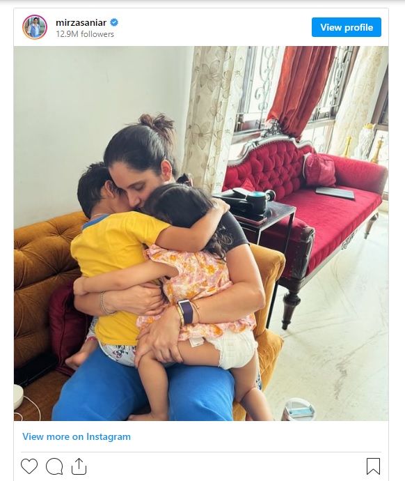 تفصیلات کےمطابق سابق ٹینس سٹارثانیہ مرزا نےسوشل میڈیا کےپلیٹ فارم انسٹاگرام پر بچوں کے ساتھ تصویر شئیرکی ہے۔جس میں دیکھا جا سکتا ہےکہ وہ اپنے بیٹے کے ساتھ ساتھ اپنی بھانجی کو بھی گلے سے لگائے پیارکر رہی ہیں اور تصویر کے کیپشن میں لائف لائن‘ لکھا ہے۔