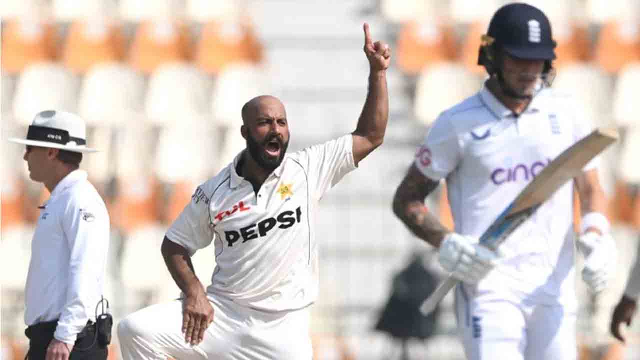 انگلش بلے باز بین ڈکٹ نے 114 رنز کی جارحانہ اننگز کھیلی اور ساجد خان کی گیند پر سلمان آغا کے ہاتھوں کیچ آؤٹ ہوئے، کپتان اولی پوپ نے 29، جو روٹ نے 34، ہیری بروک نے 9 اور بین سٹوک نے ایک رن سکور کیا۔
